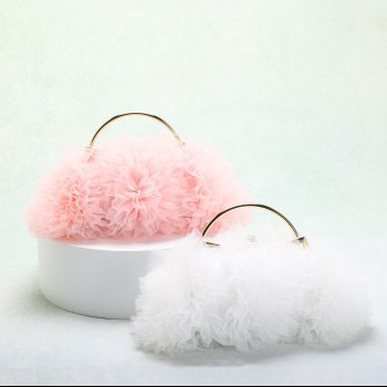 Elegant Mesh Lace Evening Clutch Bag with Metal Handle for Women