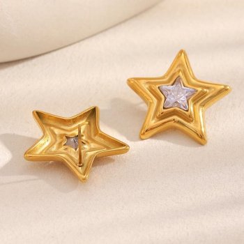 Gold Plated Star Stud Earrings with Cubic Zirconia