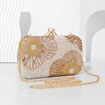 Elegant Diamond Beaded Evening Clutch Bag with Chain for Women
