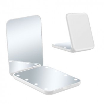 LED Folding Makeup Mirror with Lights – 2X Magnification, Pocket Size